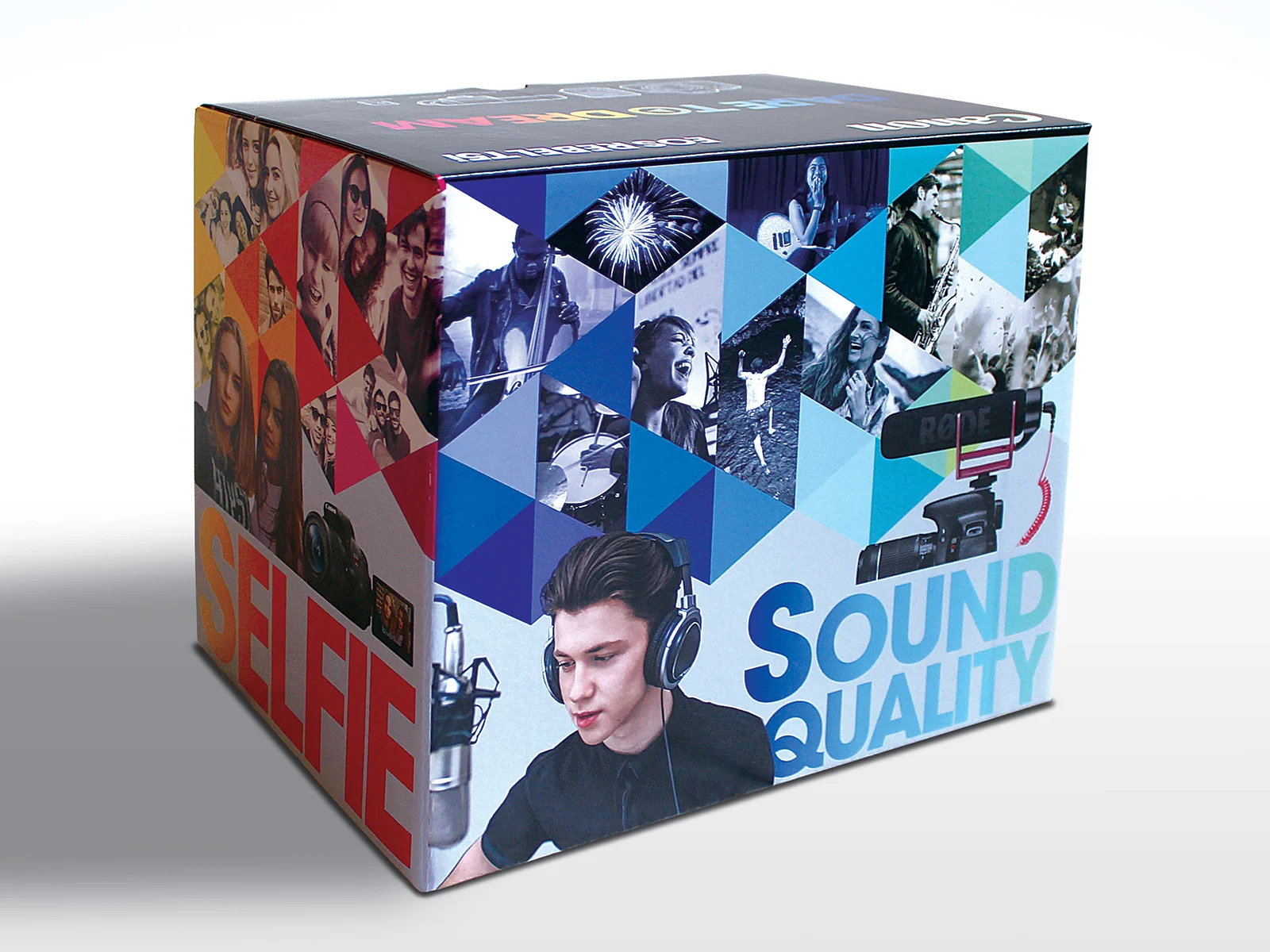 The client engaged us to develop new branding and packaging for their Video Creator Kits, targeting video creators aged teens to mid-20s. These kits included essential items like an SLR camera, microphone, and SD card.